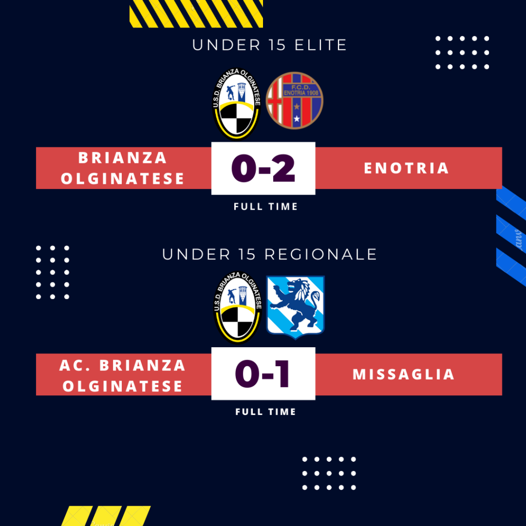 Domenica che, al contrario, non sorride per nulla alle nostre formazioni Under 15. Partendo dagli Elite, i ragazzi di Caddeo in casa non sono riusciti a centrare l’obiettivo contro la capolista Enotria. I meneghini si sono imposti per 2-0 allungando in classifica. Unica nota positiva di giornata è il pareggio del Seregno che, fermato 2-2 a Cisano Bergamasco fallisce il primo tentativo di aggancio restando a dietro ai nostri ragazzi di due lunghezze. A cadere, però, non sono stati solo i ragazzi di Caddeo. Anche l’Under 15 Regionale di mister Origo è uscita sconfitta da questo turno di campionato, superata in casa per 1-0 dal sempre ostico Missaglia.