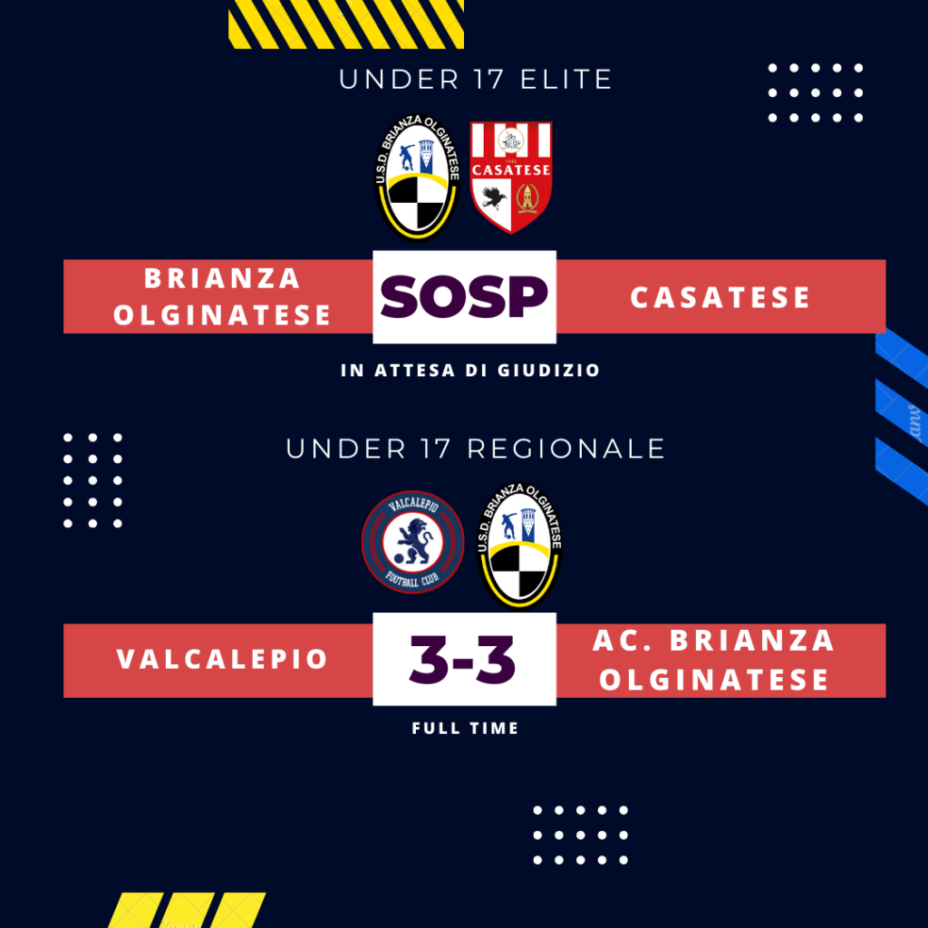 Turno di campionato, invece, tutto ancora da scrivere è quello che riguarda gli Under 17 Elite di mister Conca. I ragazzi, impegnati nel derby lecchese contro la Casatese, stavano vincendo per 1-0 il loro match quando un’infortunio del direttore di gara – causato dal grande freddo abbattutosi su Olginate ieri mattina – ha costretto il giovane fischietto a porre fine anzi tempo alle ostilità. Match sospeso, dunque, e pratica da riprendere in mano più avanti per i nostri ragazzi che ora si trovano in terza piazza, a un solo punto dalla coppia Enotria (senza match da recuperare) e Luciano Manara (una gara da recuperare) che però ieri è incappato in un pareggio interno contro il Cimiano. Se i ragazzi di mister Conca dovessero riuscire a vincere le due gare che devono recuperare (contro Giana e Casataese) si porterebbero a quota 47 punti, soli in vetta. Non ci resta che aspettare dunque. Hanno invece raccolto un solo punto i ragazzi di mister Origo che, nello scontro salvezza contro la Valcalepio, non riescono ad andare oltre il 3-3 finale. Un’occasione persa per i nostri ragazzi che in caso di vittoria, avrebbero con ogni probabilità, scritto la parola fine alla questione salvezza acquisendo un ottimo margine con chi invece è invischiato nella lotta. Niente da fare, e tutto da rifare per loro in attesa della matematica certezza.